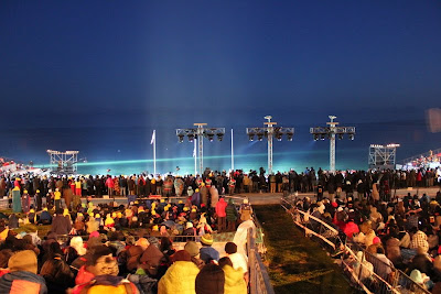 The dawn service was to be held at North beach, not Anzac Cove itself, as the terrain at North Beach lends itself better to crowds of people camping there. When we arrived at North Beach, this is the sight that welcomed us.