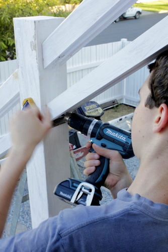Make Allie’s fence more effective- this has been an ongoing job. We built one fence the day before we left for our Europe trip (see here), and attempted to close off the rest of the yard with very attractive dog-wire, old doors, and any lots of bricks (see here). It didn't work, I'm sorry to report. We then built a proper timber front fence (see here). Unfortunately it wasn't totally Allie-proof. Here she is peeking under it.